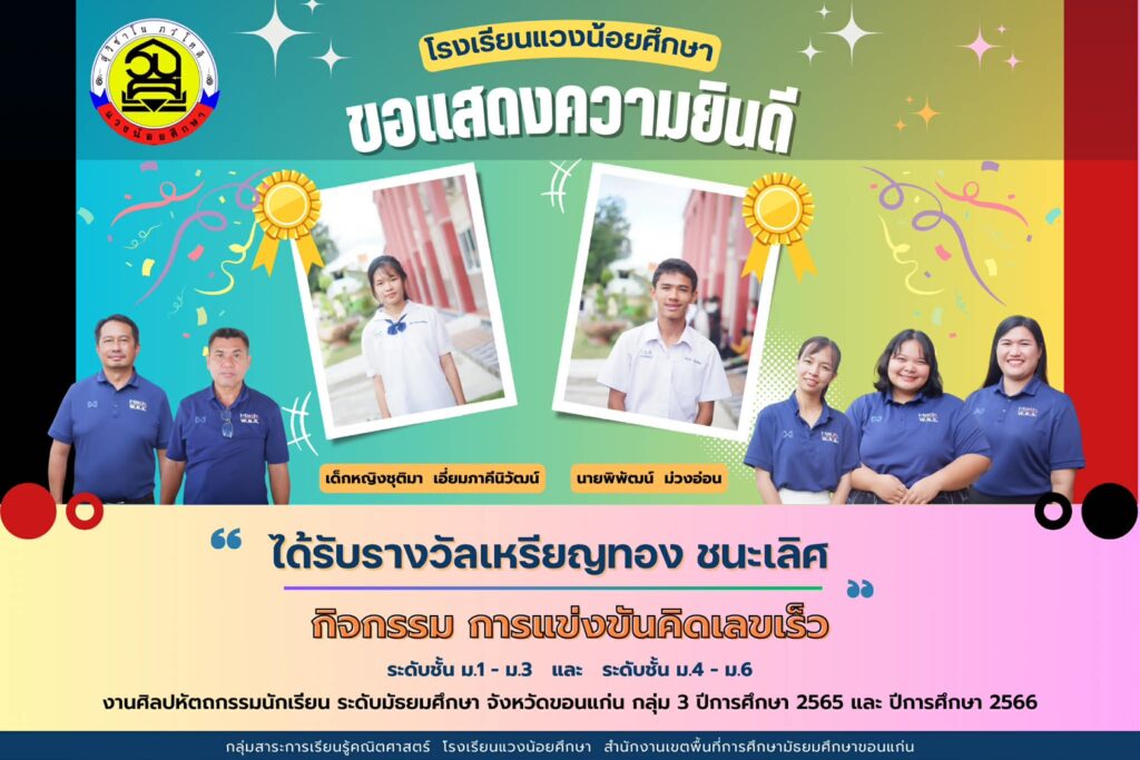 โรงเรียนแวงน้อยศึกษา ขอแสดงความยินดีกับนักเรียน ชั้น ม.3/4