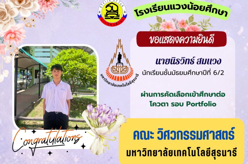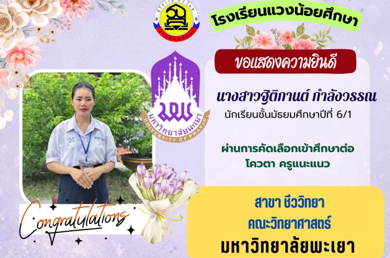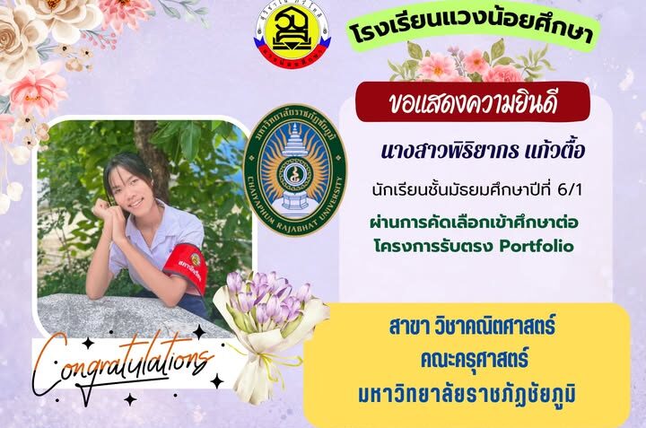 โรงเรียนแวงน้อยศึกษา ขอแสดงความยินดีกับนักเรียน ชั้น ม.6/1