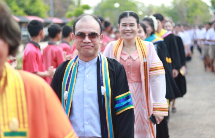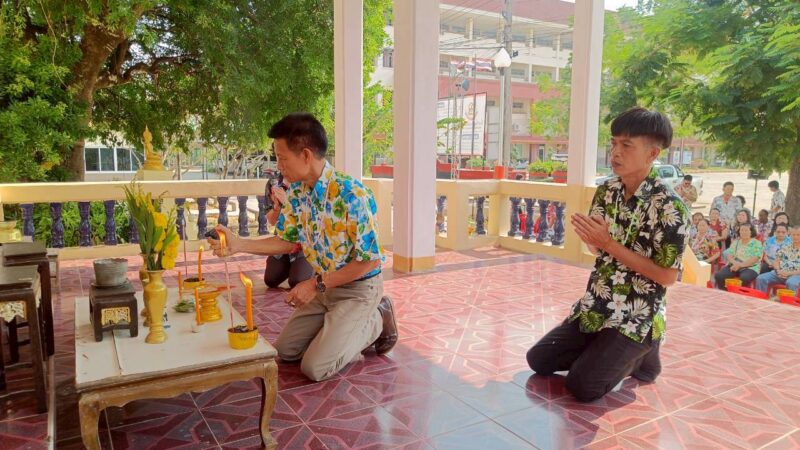 ผู้อำนวยการโรงเรียนแวงน้อยศึกษา พร้อมด้วย นายบัณฑิต ลักษณะภาวรรณ รองผู้อำนวยการโรงเรียนแวงน้อยศึกษา ร่วมกิจกรรมสืบสานวัฒนธรรมประเพณีวันสงกรานต์อำเภอแวงน้อย ประจำปี พ.ศ. 2569 ณ หอประชุมอำเภอแวงน้อย