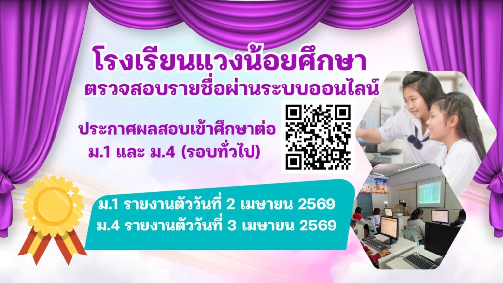 ประกาศผลสอบนักเรียน ชั้นม.1 และ ม.4 ประกาศผลสอบจัดห้อง นักเรียน ชั้นม.1 และ ม.4